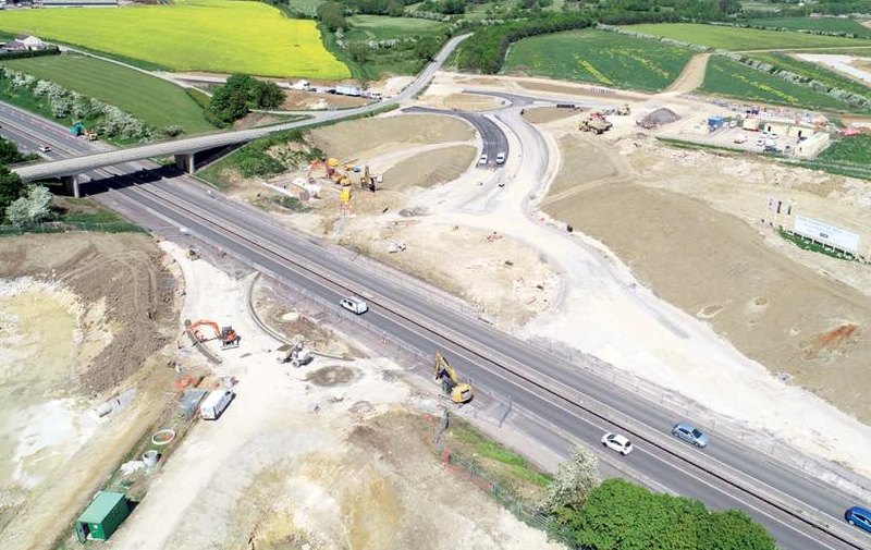 The junction experienced significant queues and delays, particularly at peak times. The project involved the removal of the roundabout and widening of the M1 spur road to three lanes. This provided a continuous east-west carriageway with a speed limit of 50mph.